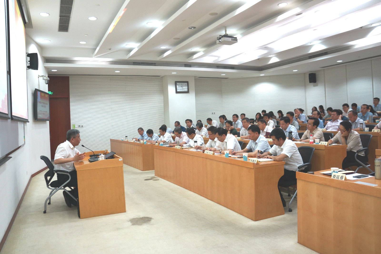 為扎實開展“不忘初心、牢記使命”主題教育,貫徹落實國資委黨委主題教育各項工作要求,6月10日至6月28日,集團黨委在中央黨校(國家行政學院)舉辦了“不忘初心、牢記使命”主題教育領導干部專題培訓班。培訓班分兩期,每期5天,集團領導班子成員、二級單位班子成員、董監(jiān)高人員、黨群人事部門負責人以及總部中層以上領導干部共計140余人參加了培訓。黨委書記、董事長、總經理王德成主持了開班式。
